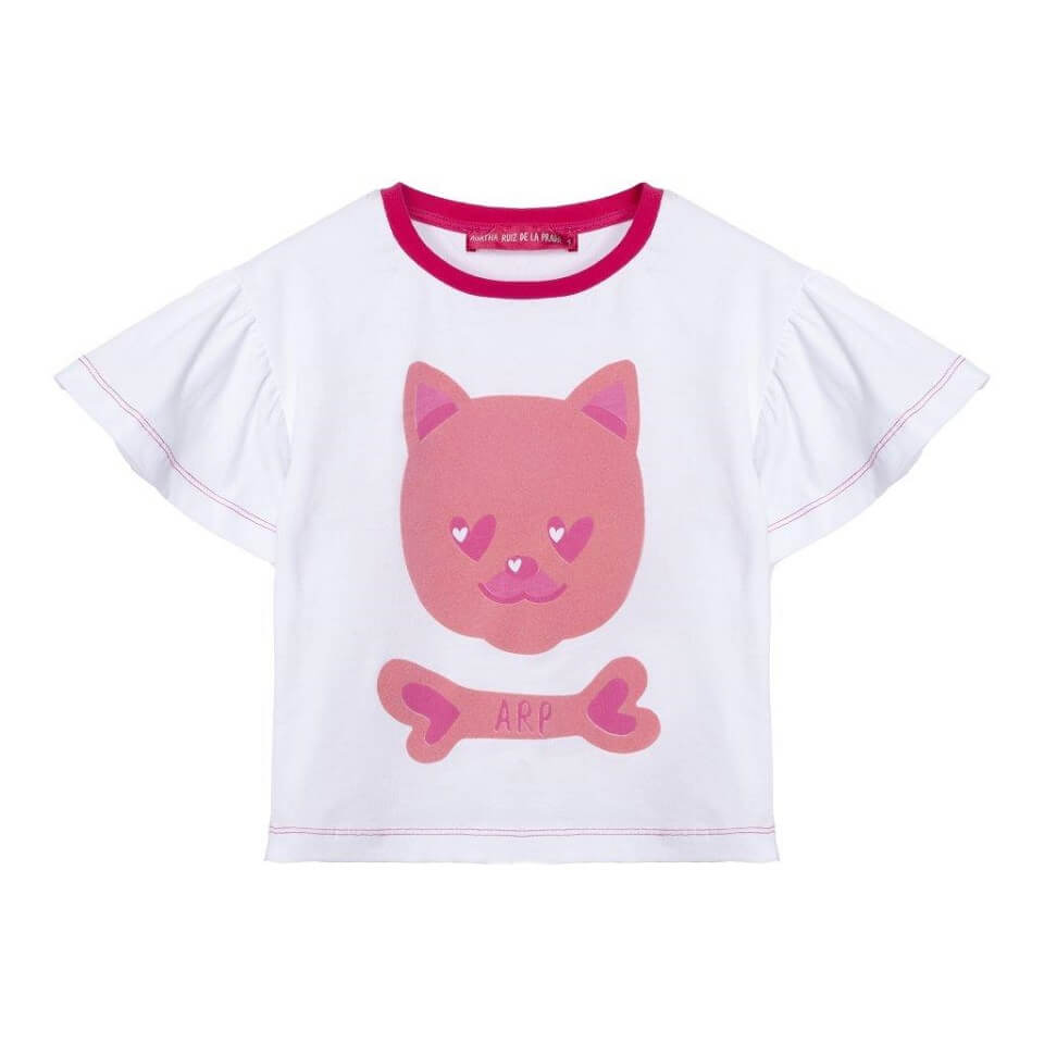 Απαλό λευκό βαμβακερό κοντομάνικο μπλουζάκι με στάμπα ένα υπέροχο ροζ γατάκι. Ιδανικό για τους μικρούς λάτρεις των γατών, συνδυάζει την άνεση και το στυλ με μια πινελιά διασκέδασης. Ο παιχνιδιάρικος σχεδιασμός του ροζ αιλουροειδούς το καθιστά ιδανικό ένδυμα για καθημερινή χρήση, ικανό να φέρει χαμόγελα σε όλους. Εύκολο στη φροντίδα και ανθεκτικό στο πλύσιμο, αυτό το πουκάμισο είναι ένα απαραίτητο κομμάτι στην παιδική γκαρνταρόμπα.