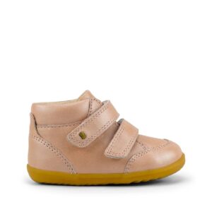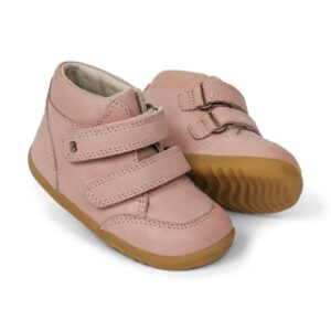 Δερμάτινα μποτάκια σε ροζ χρώμα, με δύο βέλκρο στολισμένα με το μπρούτζινο σήμα της Bobux. Το μαλακό δέρμα τους και η επένδυση στη φτέρνα προσφέρει άνεση, καθώς και εξαιρετική προσαρμογή χάρη στα αυτοκόλλητα κουμπώματα. Η ισορροπία ανάμεσα στη φόρμα και την λειτουργικότητα σε αυτό το Step up μποτάκι το κάνει την τέλεια επιλογή για casual στυλ τις κρύες μέρες του χειμώνα.