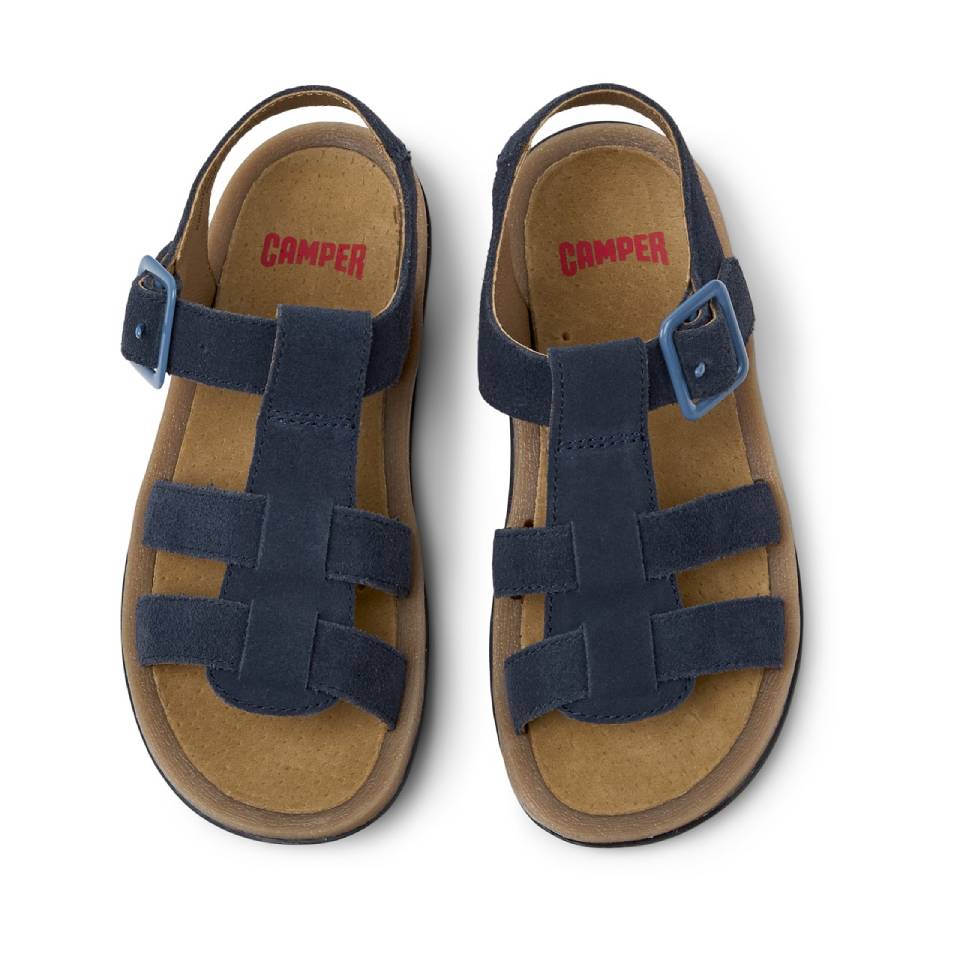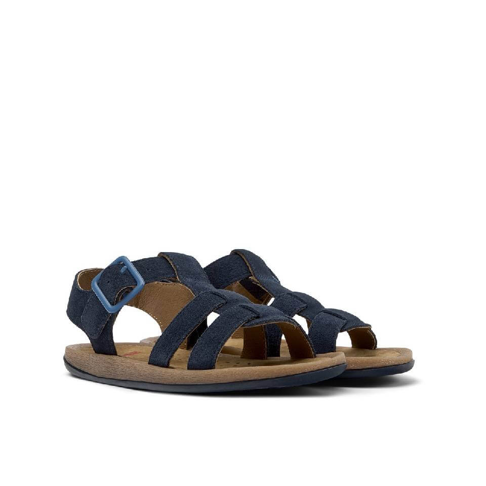 Μπλε νουμπούκ παιδικό πέδιλο με εξωτερικές σόλες από λάστιχο (20% ανακυκλωμένο).
