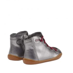 Ασημί μποτάκια για κορίτσια με ελαστικά κορδόνια και φερμουάρ για εύκολη και άνετη εφαρμογή.