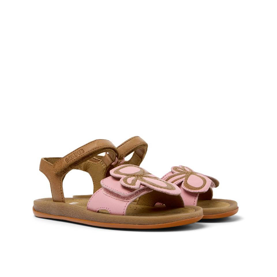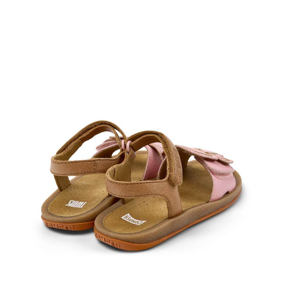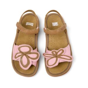 Πολύχρωμο δερμάτινο παιδικό πέδιλο με σκρατς και εξωτερικές σόλες από λάστιχο (20% ανακυκλωμένο).