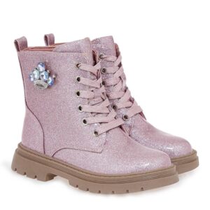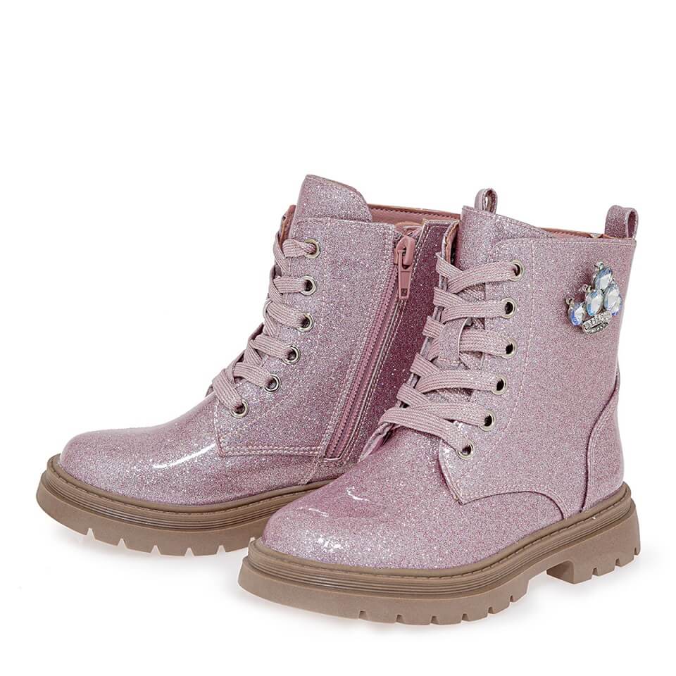 Ροζ λουστρίνι αρβυλάκια με διακοσμητικό στο πλαϊνό μέρος.