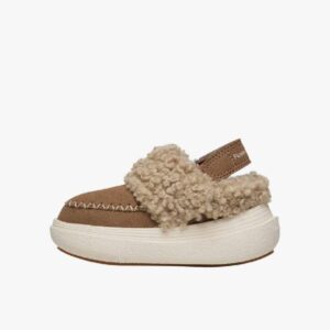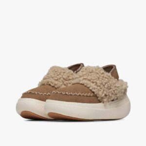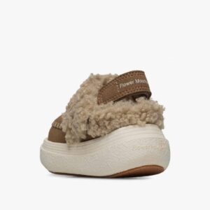 Sneakers σε σχέδιο sabot και λουράκι στον αστράγαλο. Το επάνω μέρος είναι από συνθετικό σουέτ με μάλλινη επένδυση με σγουρά εφέ. Σόλα από καουτσούκ με έντονη γραμμή.