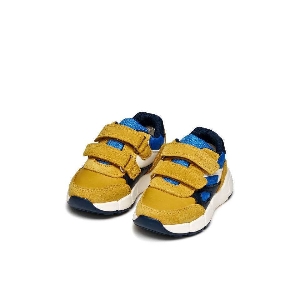 Εύκαμπτα και ελαφριά αθλητικά παπούτσια για μικρά αγόρια, σχεδιασμένα για να προσφέρουν απόλυτη άνεση στις μέρες των νηπίων. Αυτή η έκδοση του Flexyper Mini είναι κατασκευασμένη από σουέτ και δέρμα σε χρωματικό συνδυασμό κίτρινου και μπλε, και προσφέρει απαλότητα και ανθεκτικότητα ταυτόχρονα. Το Flexyper Mini προσφέρει την κατάλληλη στήριξη και ευκολία κίνησης για τις καθημερινές περιπέτειες των παιδιών.