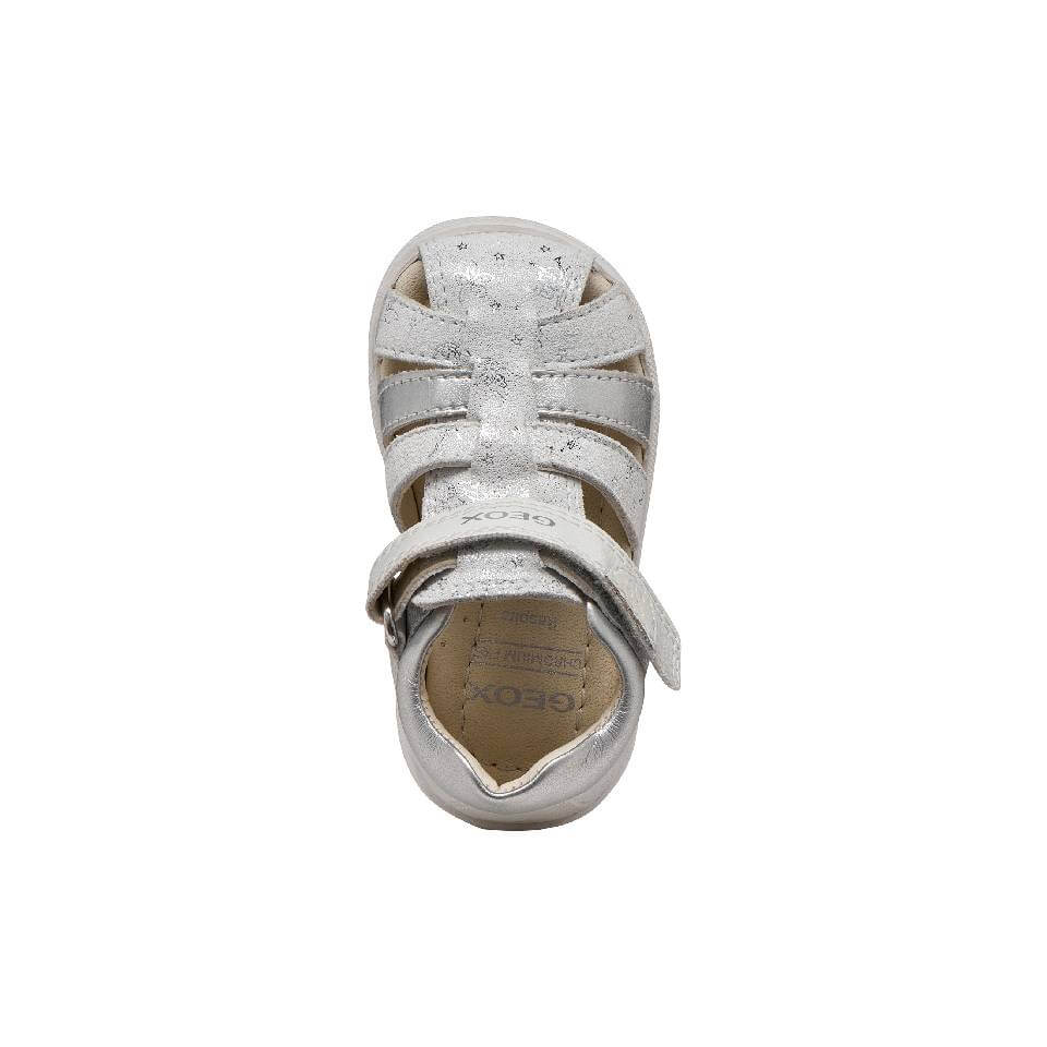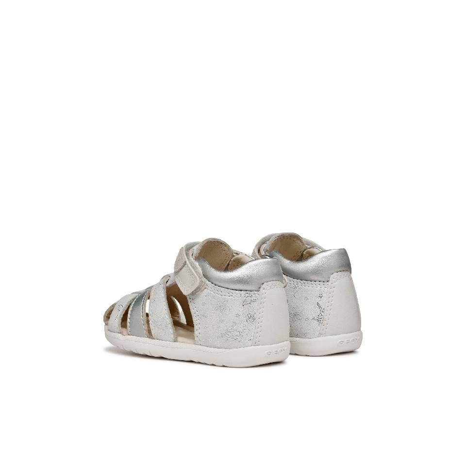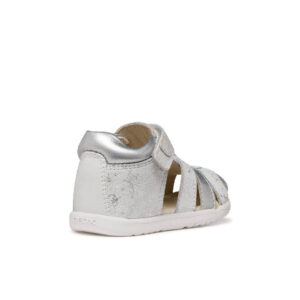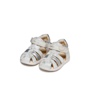 Ανατομικά δερμάτινα παπουτσοπέδιλα για κορίτσια, με ποδική καμάρα, σε λευκό & ασημί χρώμα.