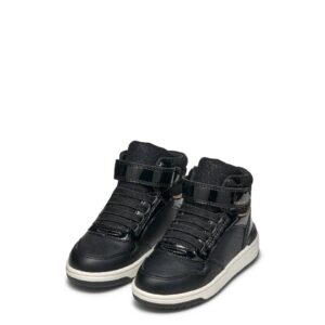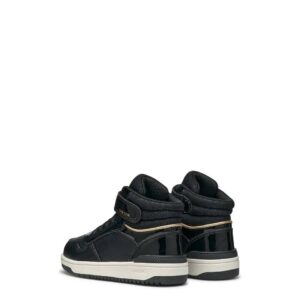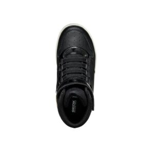 Μποτάκια για κορίτσια σε μαύρο χρώμα, με ελαστικά κορδόνια και αυτοκόλλητο για γρήγορη και εύκολη εφαρμογή.