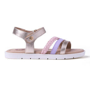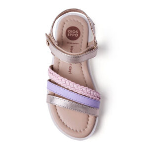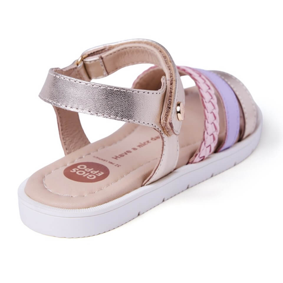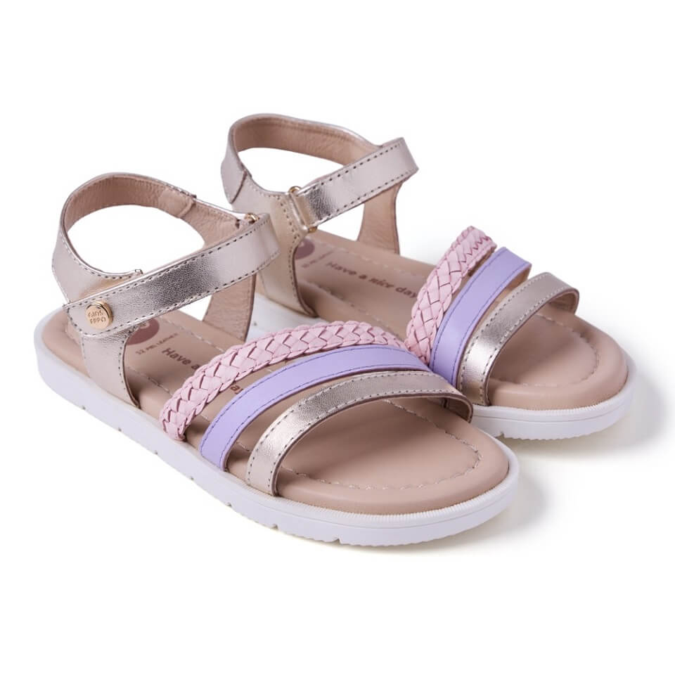 Δερμάτινα, κομψά πέδιλα για κορίτσια σε χρυσό χρώμα με πολύχρωμα λουράκια
