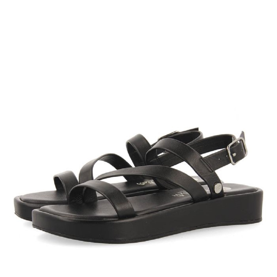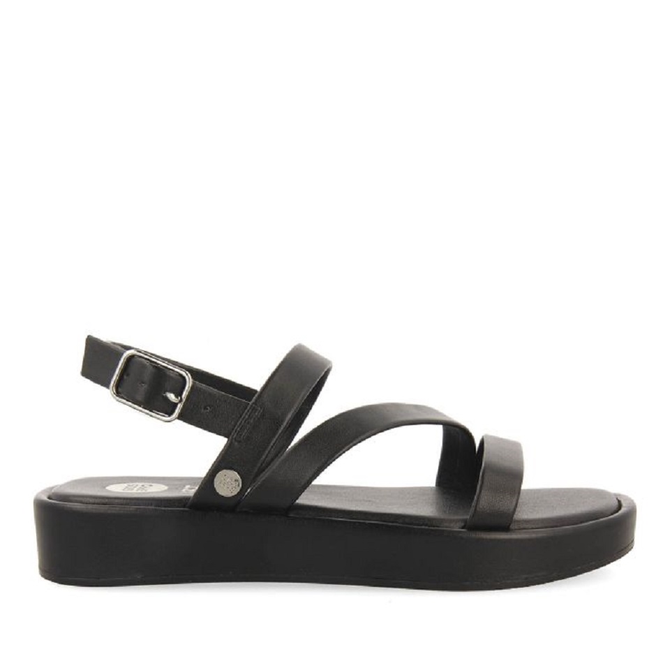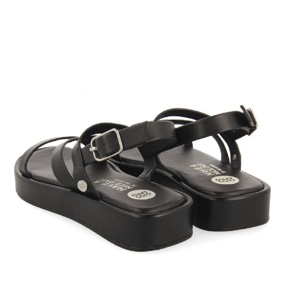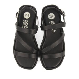 Μαύρα δερμάτινα σανδάλια με τιράντες.