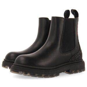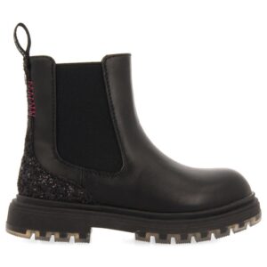 Μαύρα μποτάκια τύπου Chelsea με γκλίτερ στο πίσω μέρος.