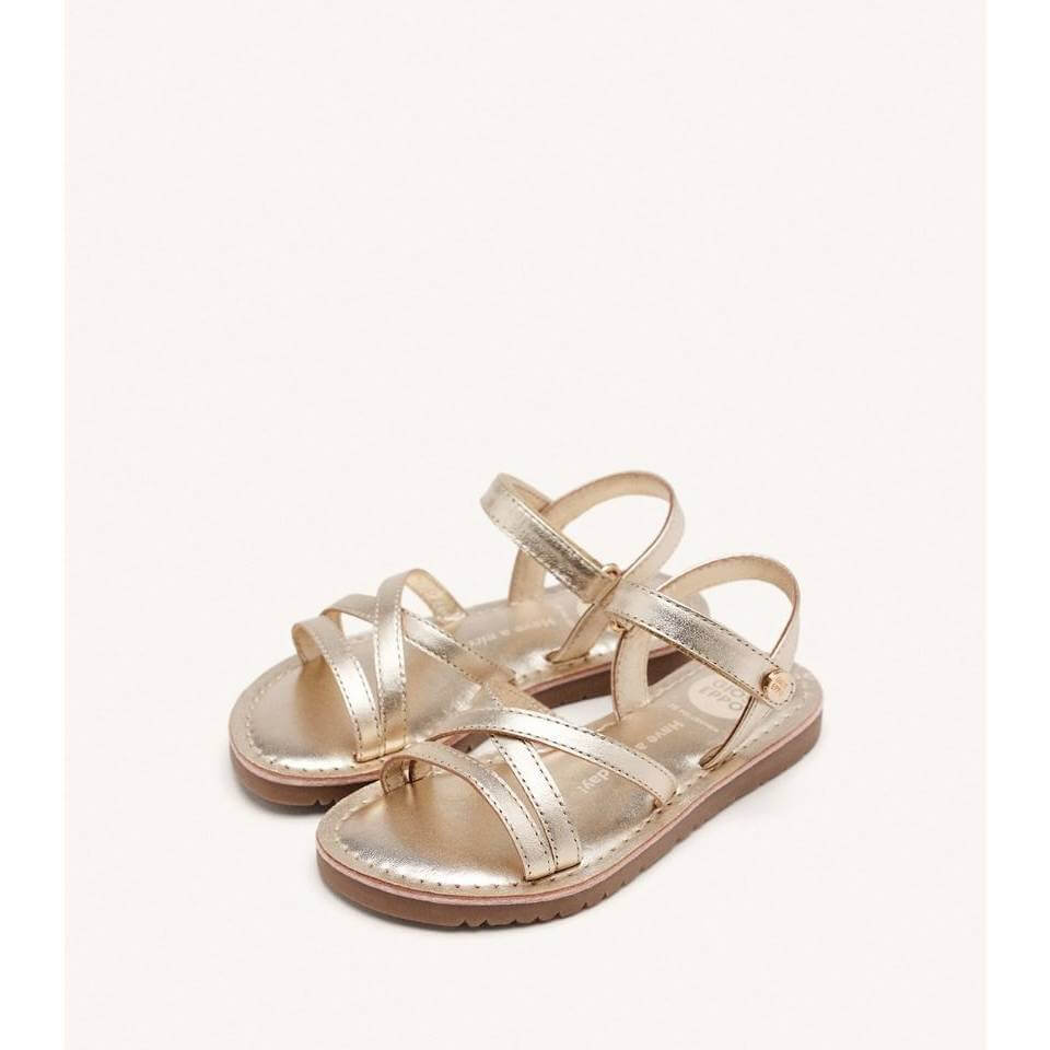 Δερμάτινα, κομψά πέδιλα για κορίτσια σε χρυσό χρώμα.