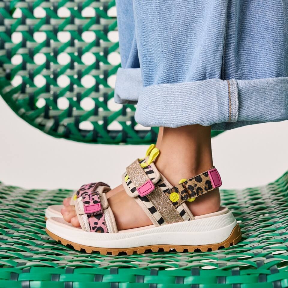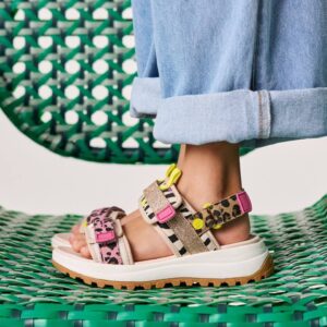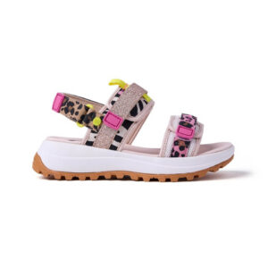 Πέδιλα για κορίτσια με λεοπάρ μοτίβο, γκλίτερ και πολύχρωμες λεπτομέρειες. Σόλα με ράγες. Ρυθμιζόμενο κλείσιμο στο πάνω μέρος και στον αστράγαλο. Αναπνεύσιμο άνω μέρος από πολυεστέρα και πολυουρεθάνη. Αναπνεόμενη επένδυση από πολυεστέρα. Εσωτερικός πάτος από Fylon, ένα αντιολισθητικό, εξαιρετικά ελαφρύ υλικό. Σόλα από καουτσούκ.