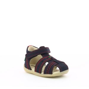 Ανατομικά δερμάτινα παπουτσοπέδιλα για αγόρια μπλε χρώμα με κόκκινες ραφές.