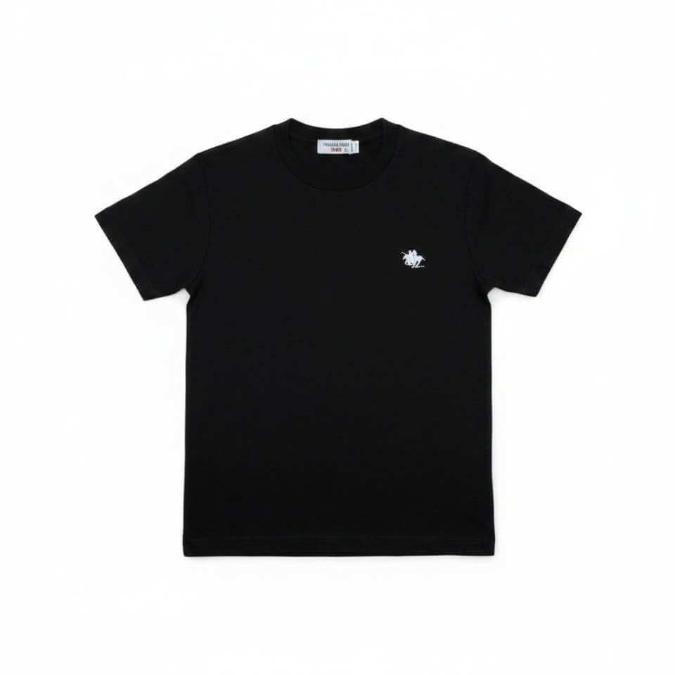 Παιδικό κοντομάνικο T-shirt σε κλασικό μαύρο χρώμα, ιδανικό για κάθε περίσταση και εύκολο συνδυασμό με όλα τα outfits. Το minimal σχέδιο με διακριτικό λογότυπο στο στήθος προσφέρει κομψότητα και διαχρονικό στυλ.