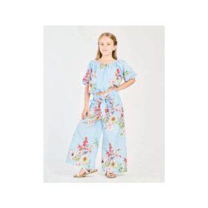 Μπλούζα για κορίτσια σε γαλάζιο χρώμα με όμορφο φλοράλ σχέδιο, ιδανική για κομψές και άνετες καλοκαιρινές εμφανίσεις. Διαθέτει ελαστική λαιμόκοψη που επιτρέπει να φορεθεί και έξω από τους ώμους, προσφέροντας μοντέρνο και ρομαντικό στυλ. Τα φουσκωτά μανίκια και η χαλαρή γραμμή χαρίζουν άνεση και ελευθερία κινήσεων, ενώ το ελαφρύ ύφασμα την καθιστά ιδανική για ζεστές ημέρες, βόλτες και ιδιαίτερες περιστάσεις.