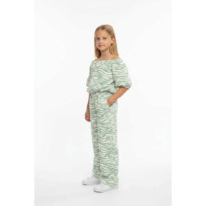 Ένα κομψό και άνετο κομμάτι, ιδανικό για το καλοκαίρι του κοριτσιού σας. Αυτή η παντελόνα είναι κατασκευασμένη από 100% καθαρό βαμβάκι, εξασφαλίζοντας φρεσκάδα και φυσική αναπνοή. Το φαρδύ σχέδιο στο μπατζάκι προσφέρει ίσια, χαλαρή εφαρμογή για απόλυτη ελευθερία κινήσεων. Η φαρδιά, ελαστική ζώνη με οι τσέπες την κάνουν ιδανική για μια κομψή εμφάνιση, για κάθε ειδική περίσταση ή ελεύθερο χρόνο