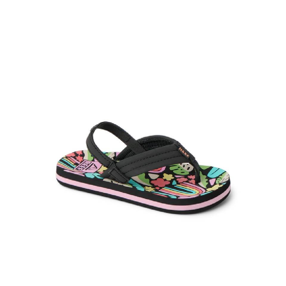 Σαγιονάρες για μικρά παιδιά σε μαύρο χρώμα με πολύχρωμα σχέδια.