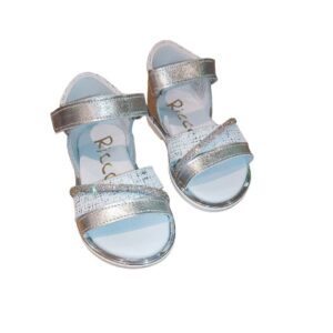 Δερμάτινα πέδιλα για κοριτσάκια σε ασημί χρώμα.