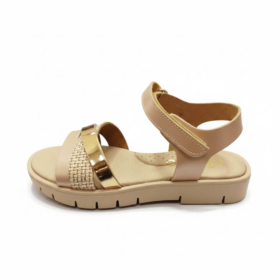 RICCO Nude/Χρυσά Δερμάτινα ανατομικά πέδιλα για κορίτσια με φυσική καμάρα