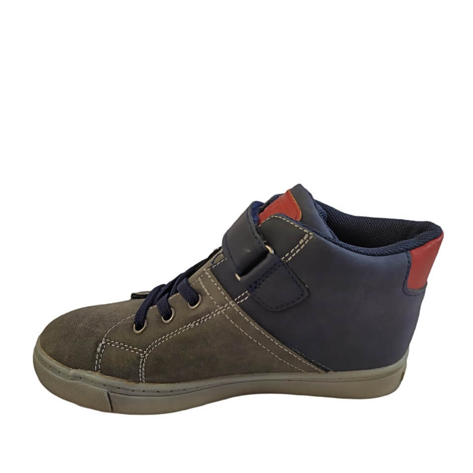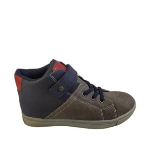 Μποτάκια για αγόρια σε γκρι και μπλε χρώμα με κόκκινες λεπτομέρειες.