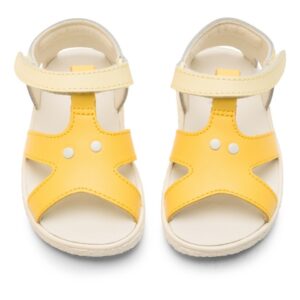 Πέδιλα για κορίτσια σε κίτρινο και κρεμ χρώμα με σχέδιο αστερία.