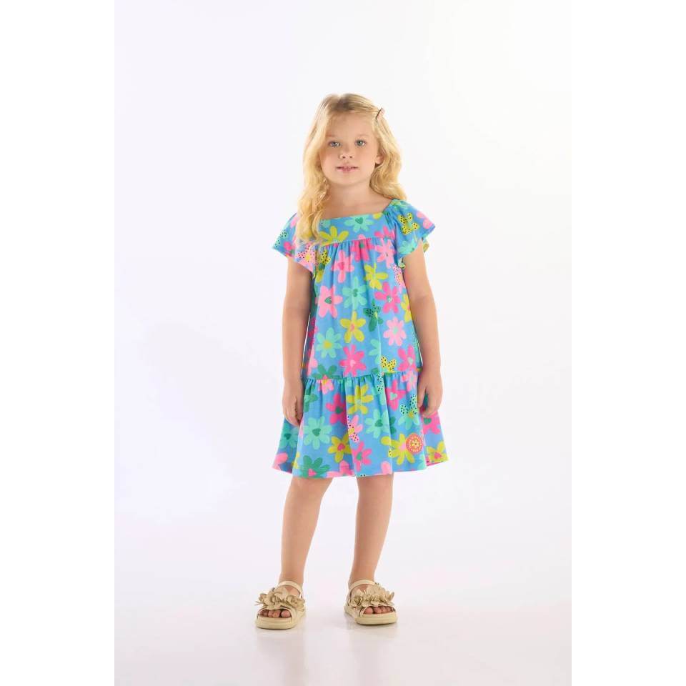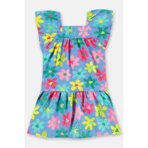 Αυτό το παιδικό φόρεμα, φτιαγμένο από πλεκτό ύφασμα ζέρσεϊ, προσφέρει άνεση και δροσιά τις ζεστές καλοκαιρινές μέρες. Διαθέτει ένα πολύχρωμο φλοράλ τύπωμα που πυροδοτεί τη φαντασία και τραβάει την προσοχή των μικρών, καθώς και σούρες στα μανίκια και λεπτομέρειες στο μπροστινό και στο πίσω μέρος, προσθέτοντας ακόμα περισσότερο στυλ. Ένα ντελικάτο και χαρούμενο κομμάτι, ιδανικό για εξόδους και ελεύθερο χρόνο.